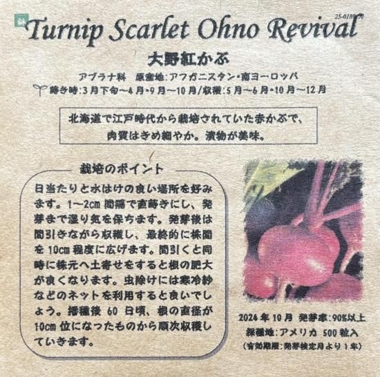 栽培されていた赤かぶで、肉質はきめ細やか。漬物が美味。プランターでも容易に栽培できます。