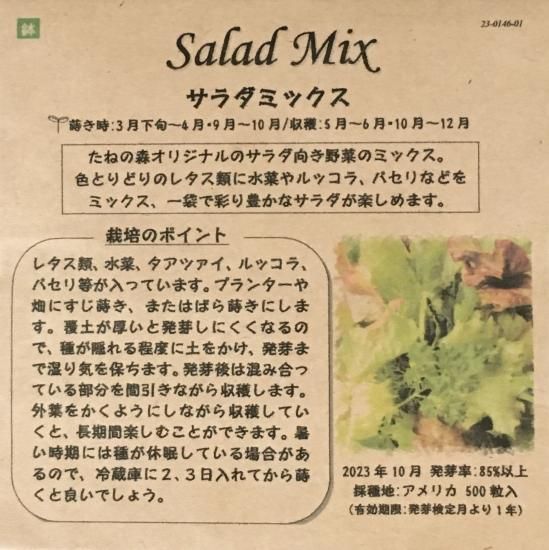 たねの森オリジナルのサラダ向き野菜のミックス。