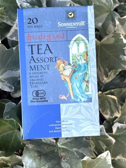人気の高いヒルデガルトシリーズのアソート。エネルギーのお茶、あたためるお茶、断食のお茶、女性のためのお茶、呼吸のお茶が1箱になりました。