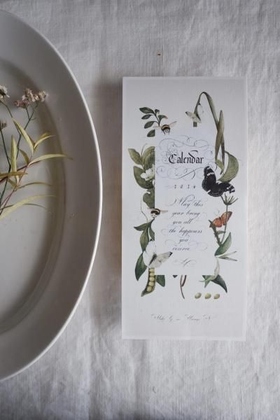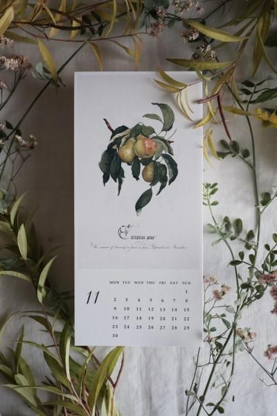 昨年大変好評だった古い植物図譜のような気品を持つ行田美香さんのカレンダーが2026年版もお目見えです。月ごとの月名や花の名前が根津屋晴世さんの繊細で優美なカリグラフィーによって美しく彩られています。