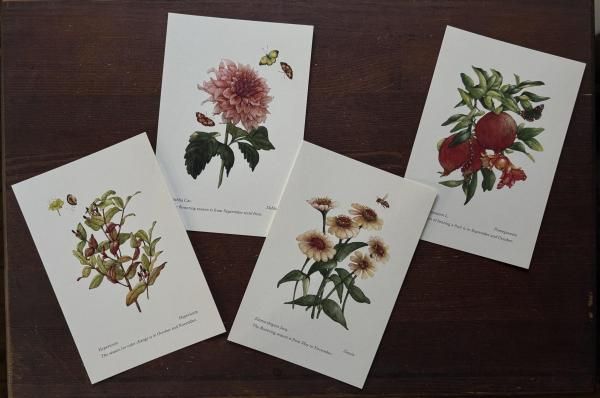 贈り物にも、季節のお便りにもおすすめの美しいボタニカルアートのポストカードセット。額装して飾るのも素敵です。